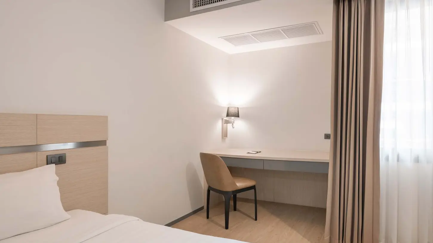 Discover comfort and convenience in our Exclusive Deluxe Twin room. Equipped with a kitchenette, dining area, washing & drying machine, and in-room water filter, it's perfect for extended stays. Enjoy unmatched functionality and relaxation.